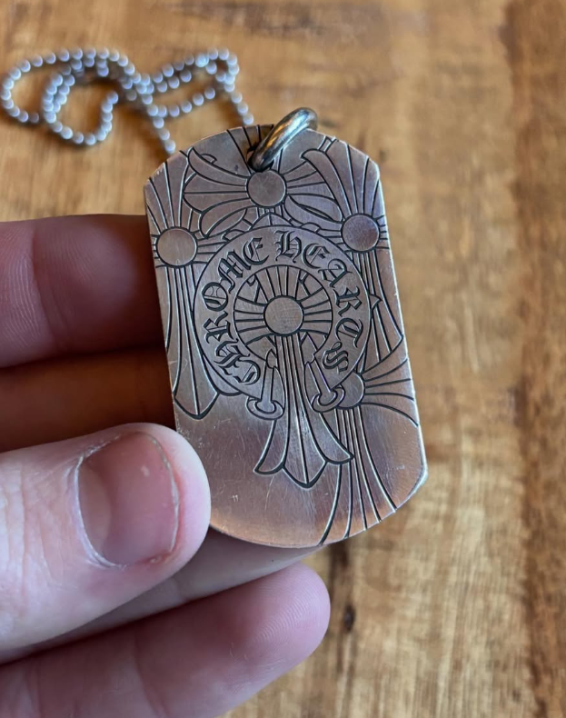 Preowned Chrome Hearts God Bless The World Dog Tag Chain