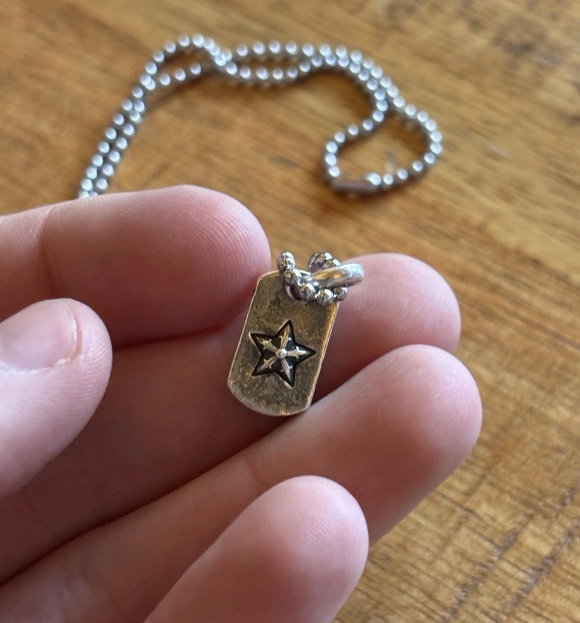 Preowned Chrome Hearts Star Dog Tag, Non Chrome Ball Chain