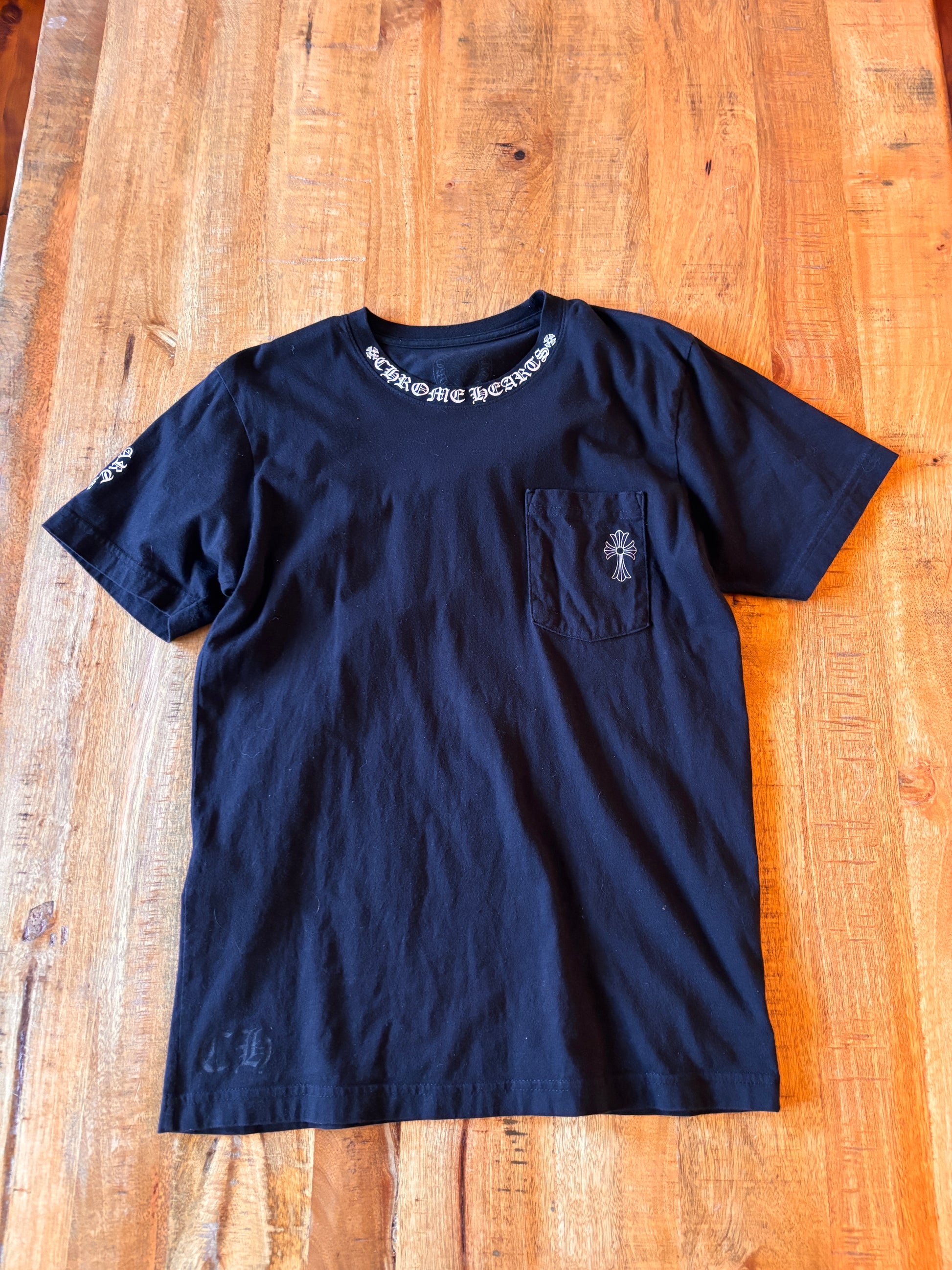 Preowned Chrome Hearts Cross Neck Logo Tee Size Medium.