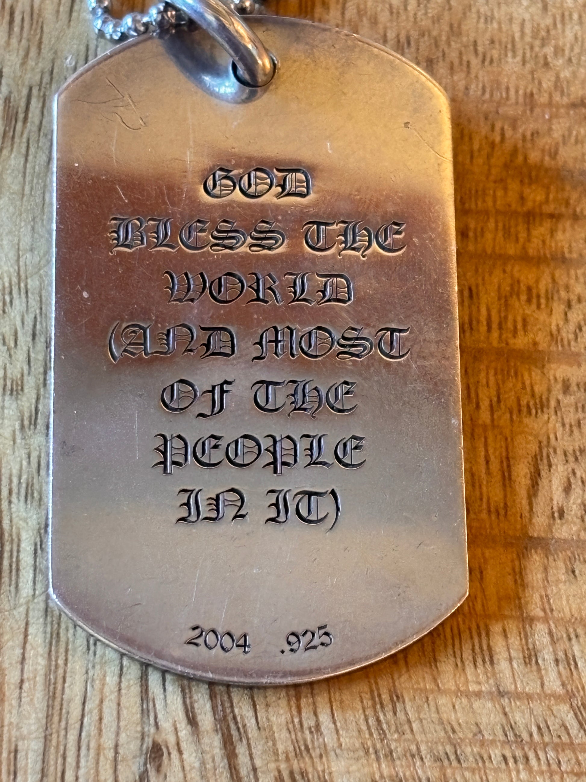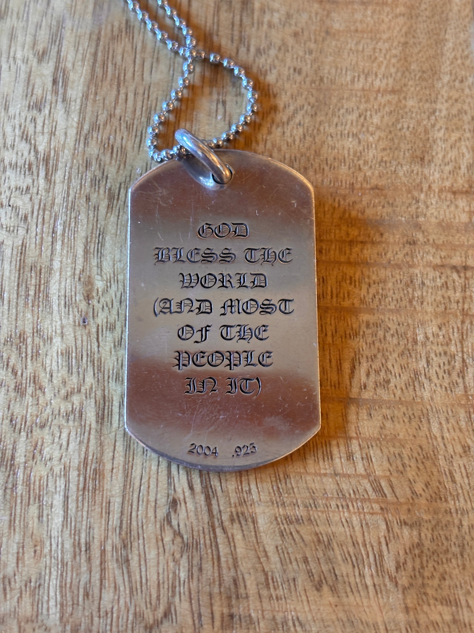 Preowned Chrome Hearts “God Bless The World And Most Of The People In It” Pendant, No Dustbag, Non Original Ball Chain